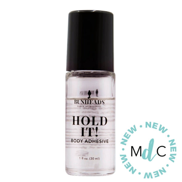 Bunheads® Hold It! Body Adhesive provides an all-day hold for leotards, costumes, wigs, and more! The hypoallergenic formula is gentle on the skin, making it suitable for all skin types. The simple, no-mess applicator allows the liquid glue to roll on in seconds and achieve a strong, long-lasting grip. Recommended use: Apply to clean, dry skin. Once the glue becomes tacky to the touch, press the item onto the skin until set. Use soap and warm water to remove from skin and clothing.